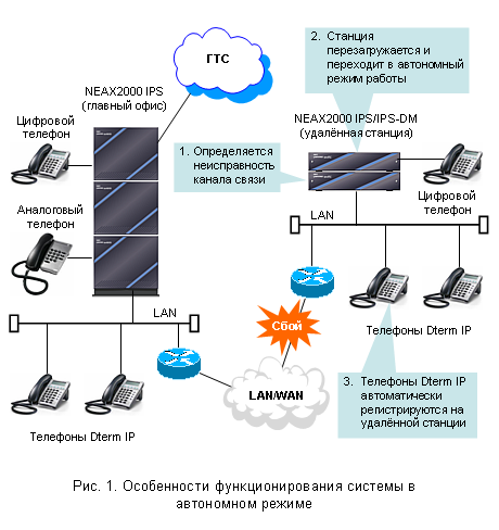 NEAX2000 IPS DM в удалённых офисах, объединённых с главным офисом через